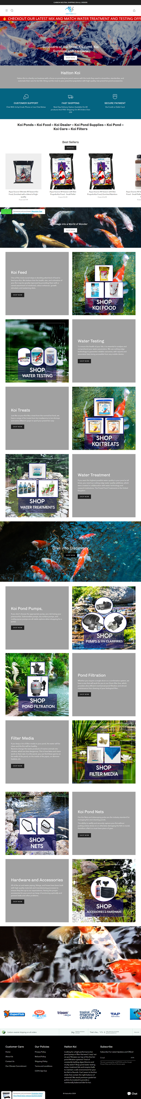 Hatton Koi supply koi pond accessories, koi fish food, filters, pond pumps & water treatments/tests